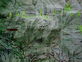 よね清水⇒天狗岩⇒牛首⇒なた首 ⇒テンス揚場⇒モクの平⇒山ノ神 |