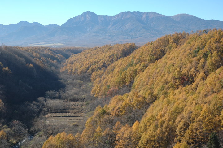 カラマツの葉は落ち、毎朝氷点下の気温。