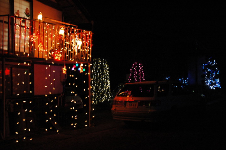 集落内はクリスマスのイルミネーションがちょっと賑やかです。
