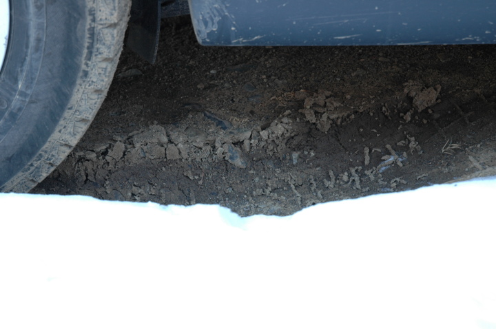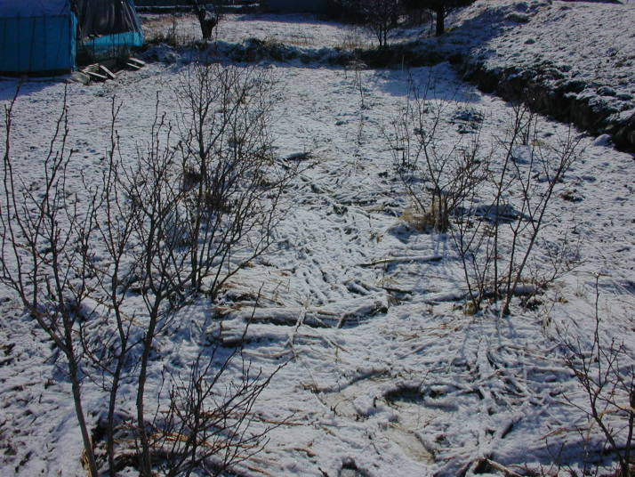 畑の土は凍っていますが、家の庭は凍土が緩んで凸凹状態、3月のような状態です。