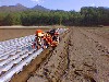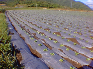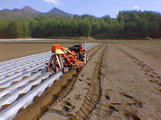 畑に植える前にマルチ張り