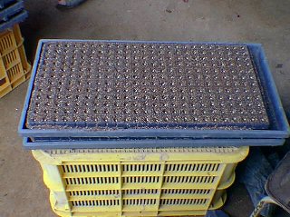 ちょっと赤みがかったのはサニーレタスです。もう3、4日で畑に植えられます。