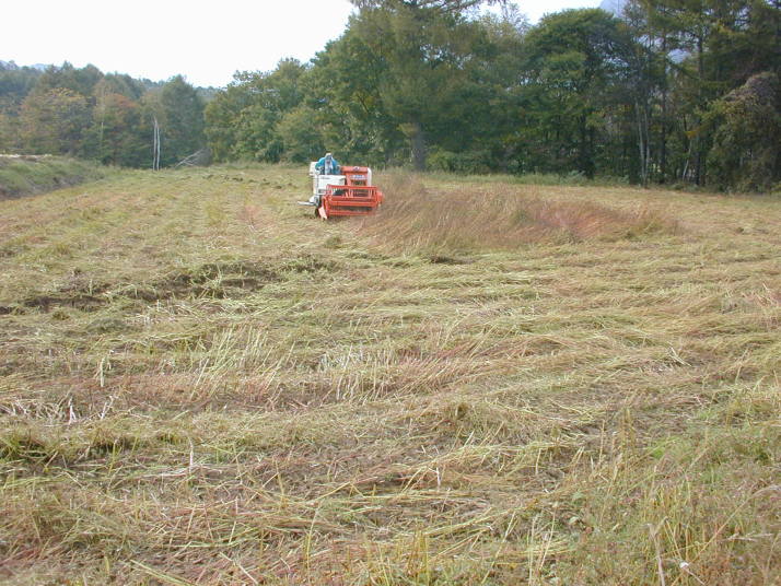 収穫は10月中旬でした。収穫量は種子用含めて約330kg(60kg/10a)と少なかった。