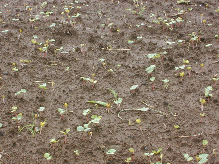 とにかく雑草を抑制する。このため、播種前にロータリー耕を2回行い雑草を埋没する。