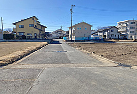 ・南側・東側ともに幅員約6m道路に接する開放感ある角地。日当り・通風ともに確保しやすい区画で、ゆとりある住まいづくりが可能です。