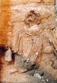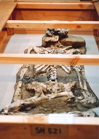 出土した縄文人の骨手足を折り曲げた屈葬の状態