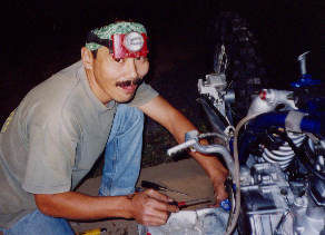 キャブレターだけは日本から持ち込み、装着しているところ。