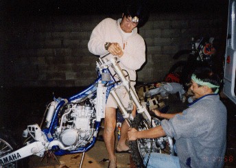 昼間はボ〜っとビールなんか飲んでるくせに、陽が沈みかけてくると、重い腰が上がり、いよいよYAMAHAの組立開始。