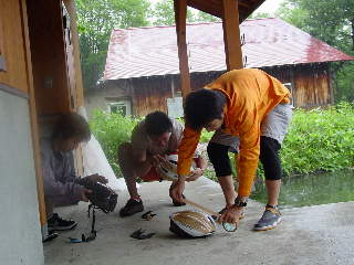 で、負けたムラヤマが恐る恐る足を突っ込む。