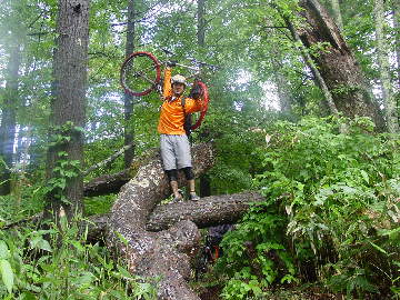 でかい倒木があっても屁の河童と乗り越えていく “野人”ムラヤマ。
