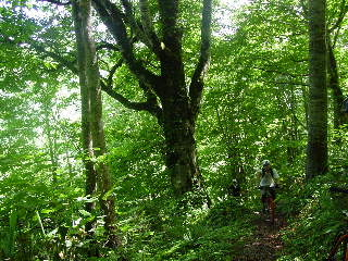 森の精霊が宿っていそうなブナの大木をかすめ、