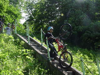 この体勢でちゃりんこを降ろすのが最もローリスクな戦法。