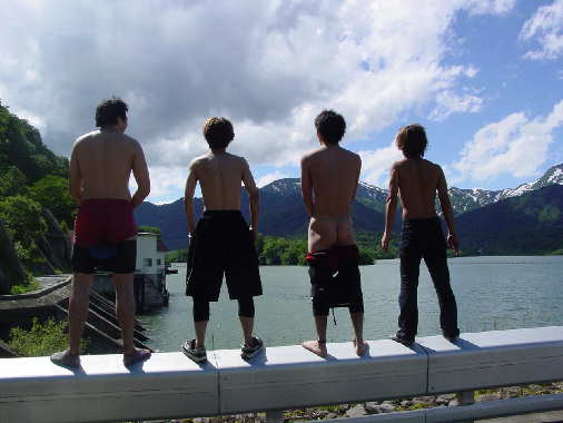ダムの上のコンクリートにごろりと寝っ転がって、日光浴しながら
