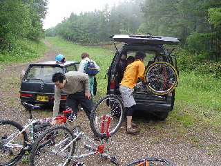 注)車でチャリンコを引っ張り上げるのは大変危険でしゃれにならないので絶対に真似しないで下さい。