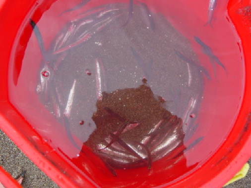 ムムム?と行ってみるとコクチ鰯の大群が波打ち際で右へ左へと回遊しているじゃないか。そして時折波に洗われて砂浜に打ち上げられピチピチしている。