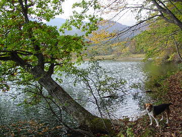 池から外れると観光客もいないのでノーリードで散歩する。