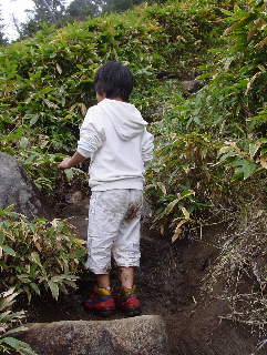 常に先頭で登りたがり、前日前夜の豪雨でちゅるちゅるになった登山道で何回も