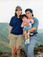 まだ1歳ちょいのヨースケを背負子に入れて志賀山をハイキングした時の山頂でのスナップ。