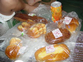 前日、川満で買った菓子パン各種にクノールあさりスープ。