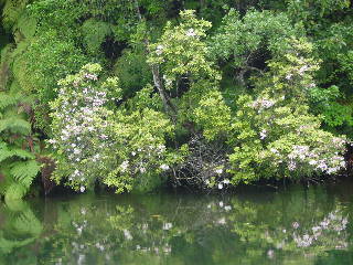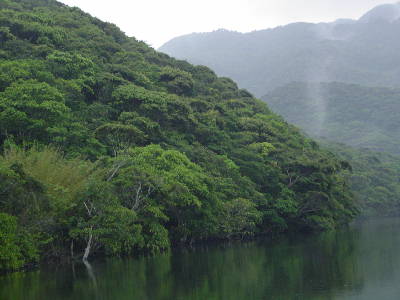 マングローブだけでなく、亜熱帯の雑木に囲まれた谷あいを流れる満潮の浦内川は湖の
