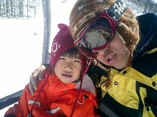スキーの時だけは、とーちゃんになつく。