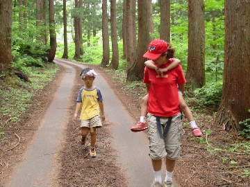 PM 3:30 ナツをカミさんと交代でおんぶしながら、ようやく杉野沢の民宿街に到着。