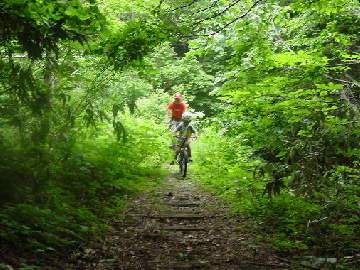 だけど、ゆるやかなのぼり坂の為、スケはMTBを押しっぱなし。