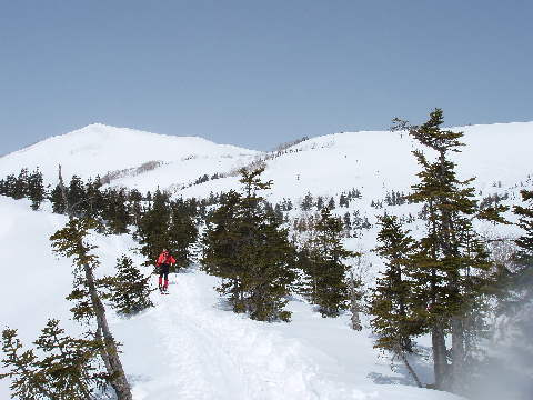 まずは右手の天狗原の台地を目指します。
