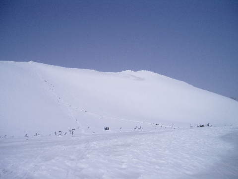 正面の東京ドーム3個分の斜面を突き上げると白乗の頂上。