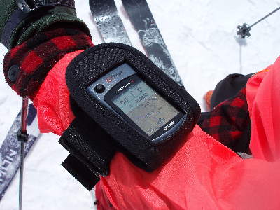 かじかんだ手でシール剥がして、滑降モードに切り替え中。