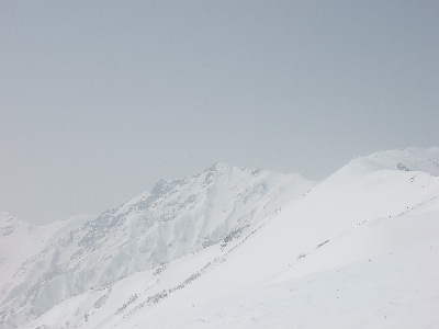 ムムッ、稜線付近は風が強いようだ。雪煙が舞っている。