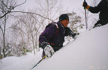 1999年元旦。11時15分に家を出発。霊仙寺山ピーク到達14時30分。休む間もなくスキーで下山。