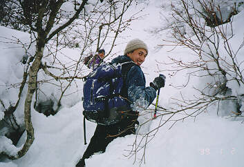 現に昨日はわざわざツボ足跡を避け単身、処女雪をスイッチバックして登っていった。