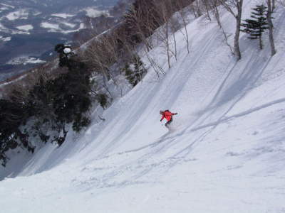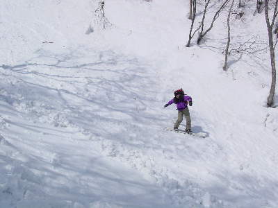 (こん時も斜面を板で切ってくそばから、ZUZAAAAAAAAA・・・・・・)