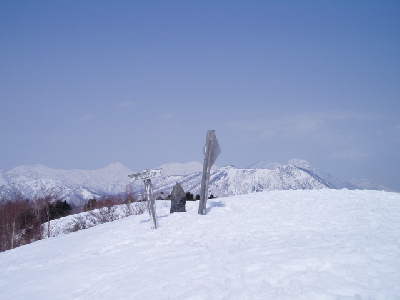 リフト2本分を乗り継いだゲレンデトップから霊仙寺山々頂までハイクアップする。