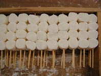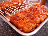 手作業で切り分けて串に刺してございます。現在では機械化されていることの多い作業工程も