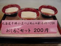 | 調理盛り付け例 | 十勝小豆つぶあん+杵搗き餅 | おしるこセット 210円 |