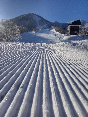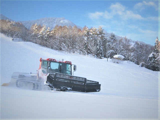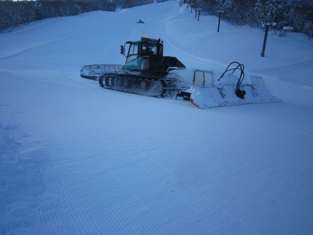 | 朝一番の圧雪整備しています | 今日は綺麗に整備終わり | もうそろそろ整備終わります |