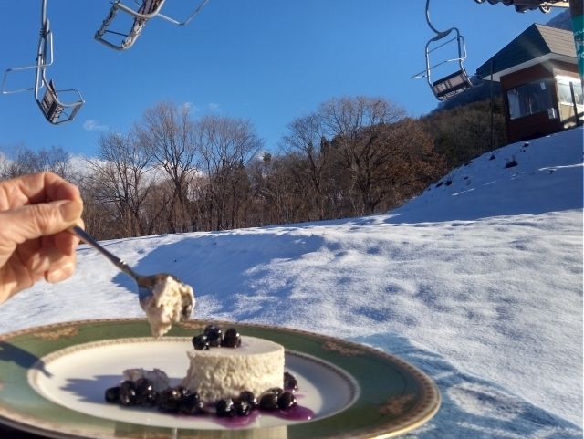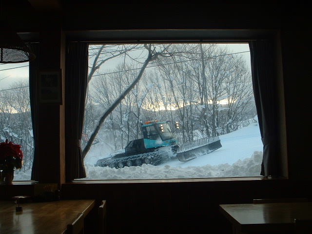 景色が綺麗なレストランに移動 レストランの窓の外ロマンスコース整備しています |