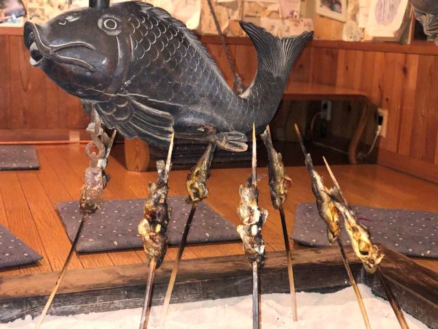 2 イワナの串焼き 炭火でじっくり焼き・骨・頭も食べれます、 川魚の匂いありません。 |