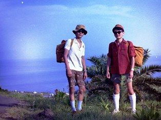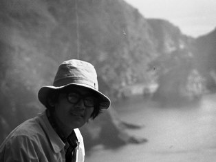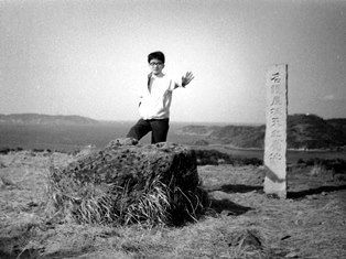 当時はネットで何かを調べるなんていうこともなかったし、宿の予約もなかなか大変だった。中野ブロードウェイの2階だったか3階だったかに旅行代理店があって、そこで大沢温泉の民宿を手配した。どうやって伊豆までいったのか、その道中の記憶はまったくない。最初の写真は石廊崎の海を見下ろす場所でのものである。石廊崎ではかなり風が強かったことは覚えている。