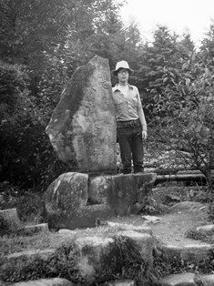 キャンプ場でバンガローを1棟借りる。近くに何だか分からなかったけれど、石碑があった。