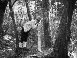 平成25年に再訪の計画をしたときに買った山岳地図には、この分岐から北上する道は無かった。諸坪峠からは、ほとんど高低差の無い山道をグルグルと巻いていく。すぐ目の前に見えるところに行くまでに30分も40分もかかってしまう。先を歩いていたヤノと同じところに足を置いたとき、その足場が崩れ、危うく崖下に落ちるところだった、ヤノの悪意を感じた。