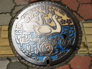 最近各地のマンホール蓋の写真を撮るようになった。最初に撮ったのは平成24年に能登半島を旅行したときだった。輪島の朝市の見学中に見つけた、御陣乗太鼓をあしらったカラーのマンホール蓋だった。そのときの写真は、保存しておいたHDDが故障して取り出せなくなってしまって、残念な思いをしている。現在、旅行中でも気が付けば撮影しているのだが、下ばかり向いているわけにいかないので、つい忘れてしまうことがある。それでも何とか、ご当地色豊かなものを見つけて撮影しようと思っている。