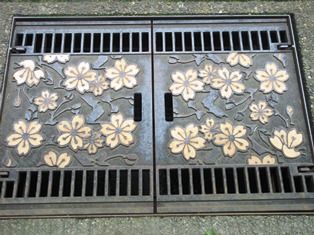 側溝のグレーチングにも桜が描かれていたので撮ってきました。