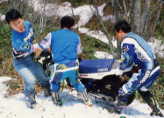 | 河でも | 大石ゴロゴロでも | 橋が無くても | 雪でツルツルでも | コースアウトしても |