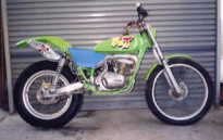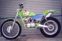 | フォークはベータTR34のもの | ワンオフアルミスイングアーム | RサスはホンダTL |