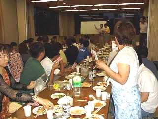 | 7月9日(日)松本市本郷公民館に於いて第2回 ニイハオ飲茶(ヤムチャ)パーティーを開きました。 中国人参加者は、留学生・廊坊市研修生、帰国 者など約30名、日本側参加者も約30名参加し ました。 献立は中華料理、前菜3品、中華炒め4品(麻婆 なす・エビの中華風炒め・ニンニクの芽炒め・春巻 き)、主食は餃子2種類と大変豪華な内容でした。 特に水餃子、海鮮餃子、豚の耳とねぎの和えもの が人気でした。 |