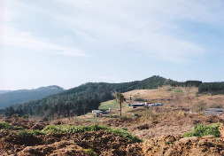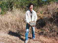 鹿児島の黒曜石原産地 ★写真左上 日東黒曜石原産地 有名な上場遺跡そば ★写真左下 桑ノ木津留の黒曜石原石 鹿児島−熊本県境で、良質な原石。 火砕流中にある。 ★写真右下 五女木の原石 人物は宮田栄二さん 撮影:2000年 つつみ |