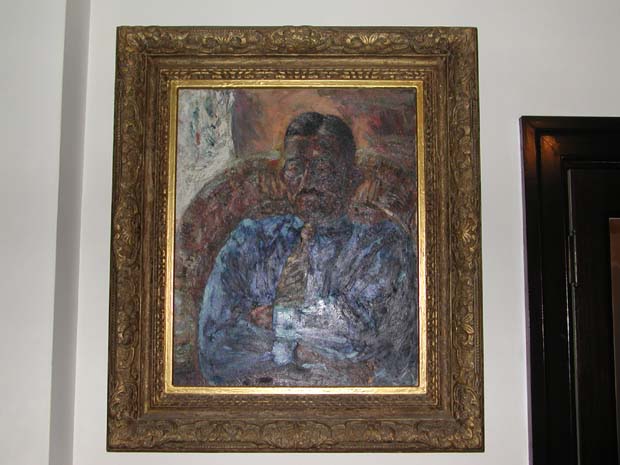 | 応接室にて-和田議員 | 故鳩山一郎氏愛用の椅子の横に座り往時に思いを馳せる | 故鳩山一郎氏肖像画(油絵) |
